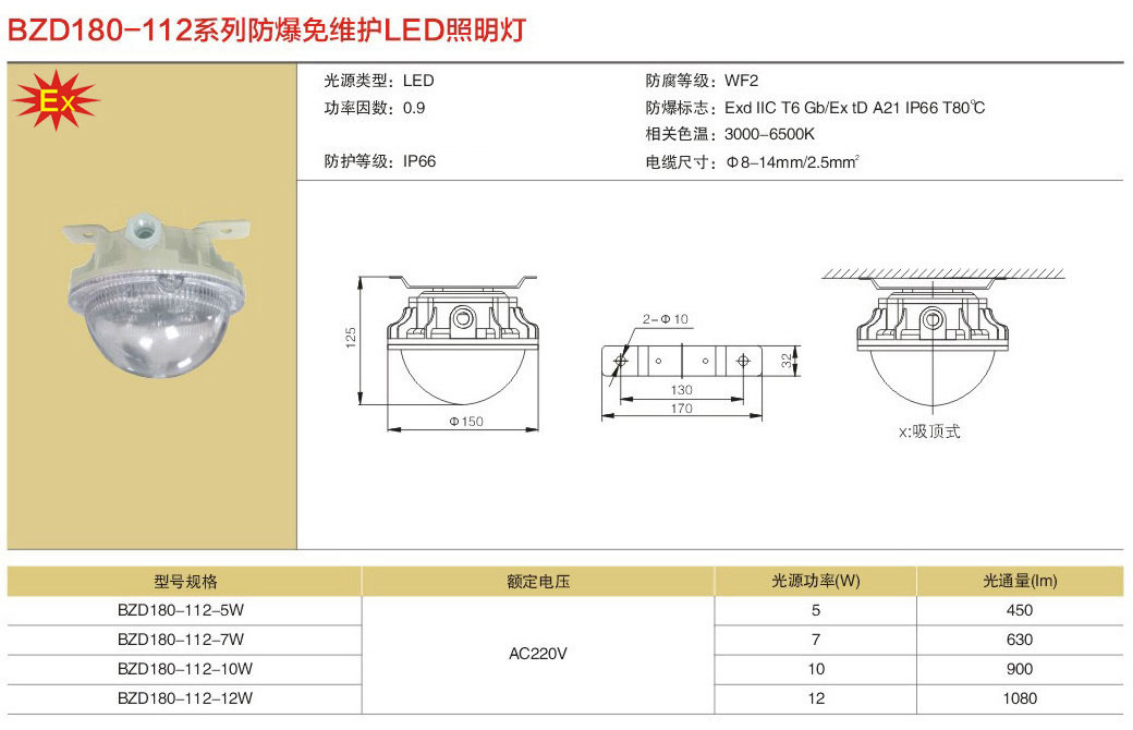 产品中心 LED免维护防爆灯具系列 免维护LED防爆照明灯BZD180-112