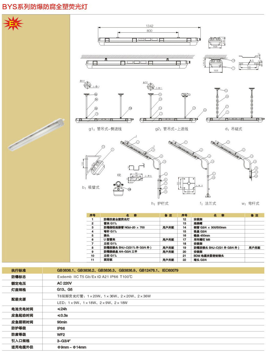 产品中心 防爆荧光灯具系列 BYS系列防爆防腐全塑荧光灯