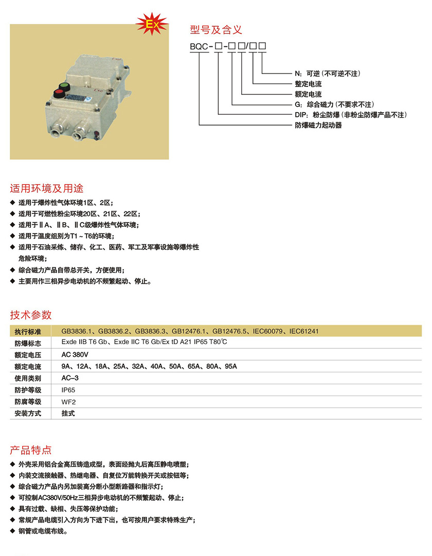 产品中心 防爆配电箱、电器管件类 BQC系列防爆磁力起动器(IIB、IIC)