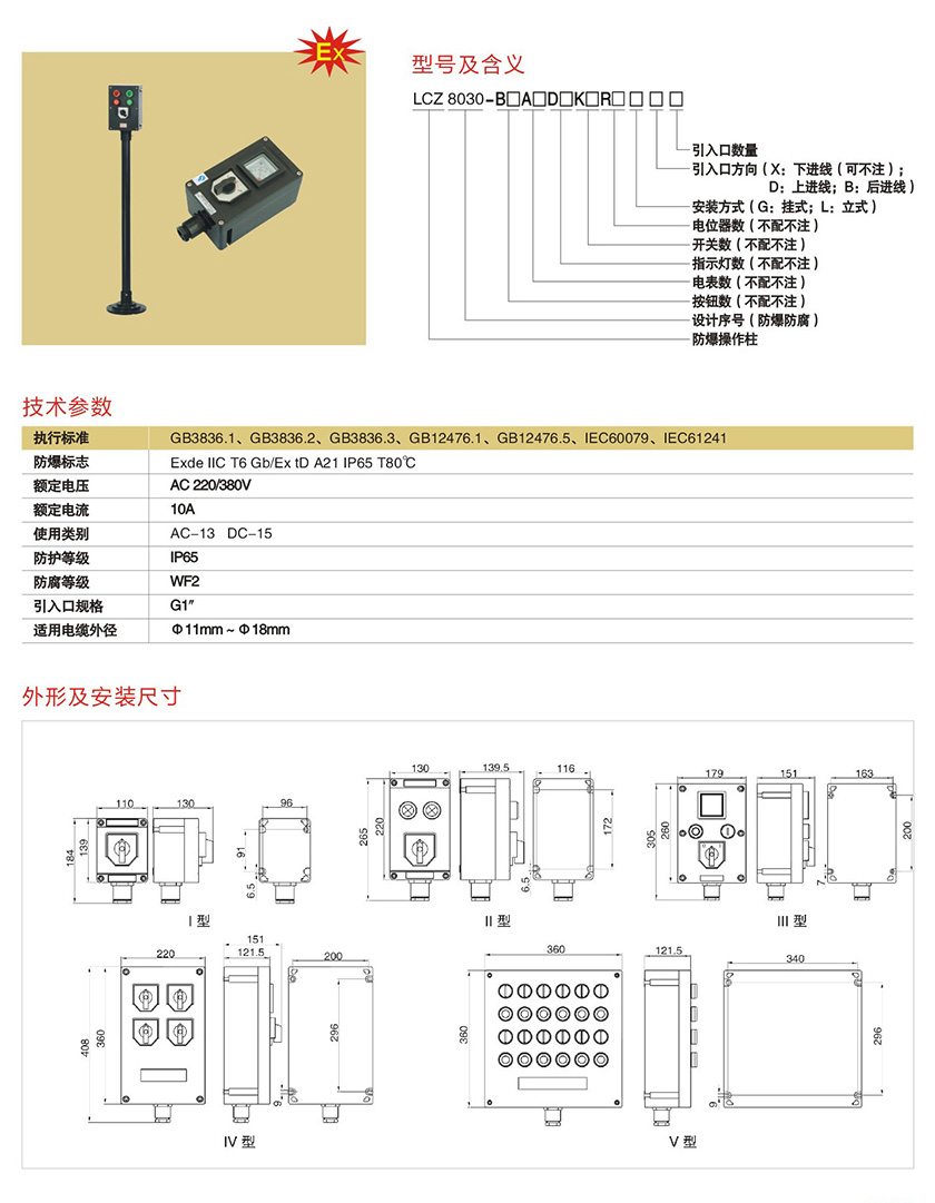 产品中心 防爆配电箱、电器管件类 LCZ8030系列防爆防腐操作柱(IIB、IIC)