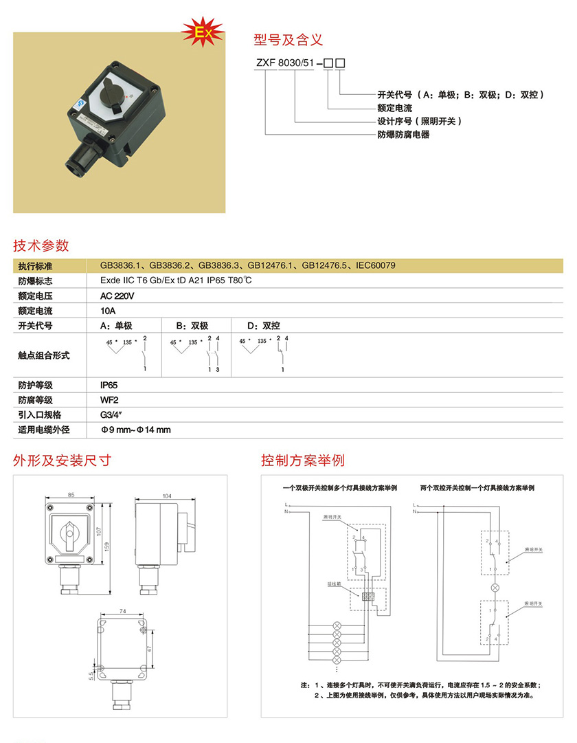 产品中心 防爆配电箱、电器管件类 ZXF8030/51系列防爆防腐照明开关(IIB、IIC)