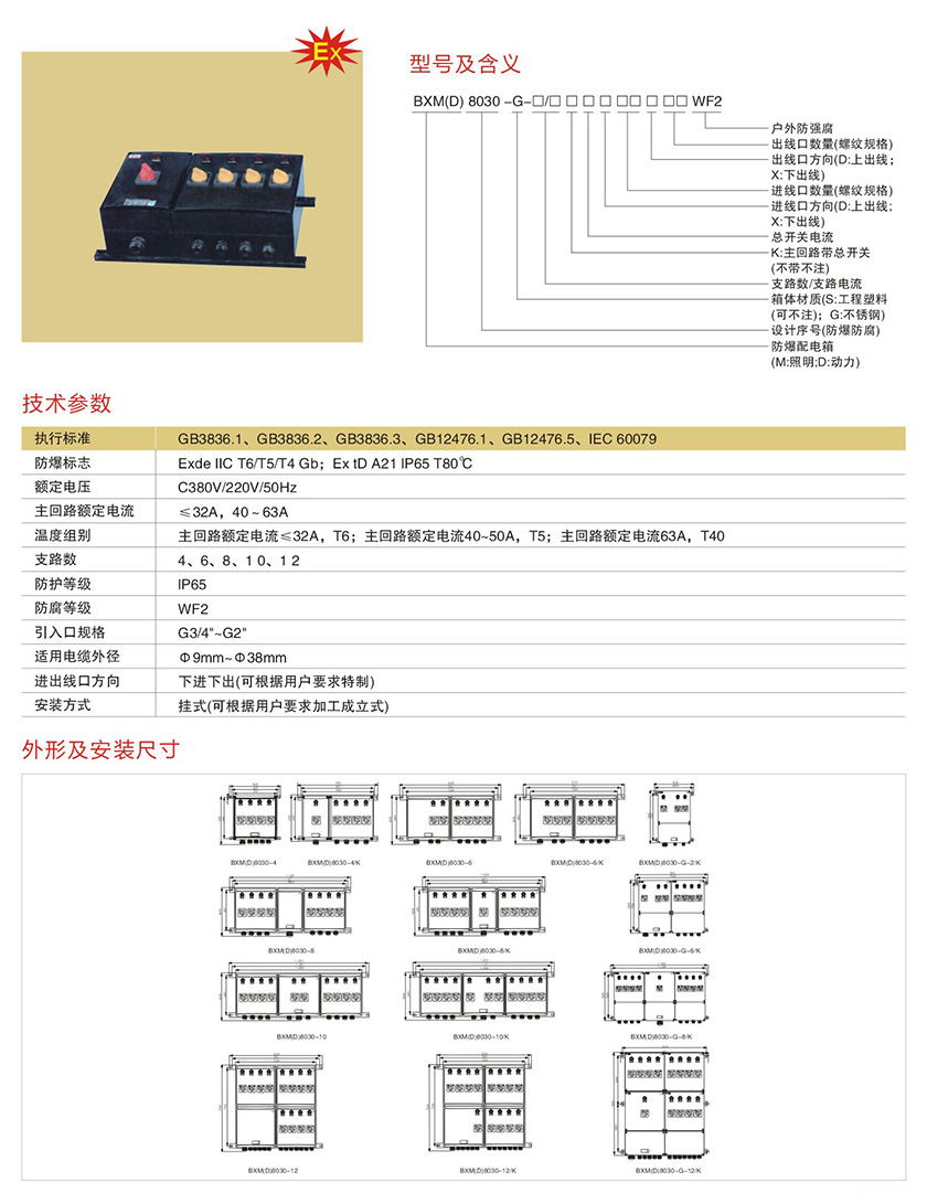 产品中心 防爆配电箱、电器管件类 BXM(D)8030系列防爆防腐照明(动力)配电箱(IIB、IIC)