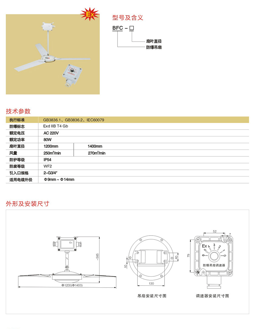 产品中心 防爆配电箱、电器管件类 BFC系列防爆吊扇(IIB、IIC)