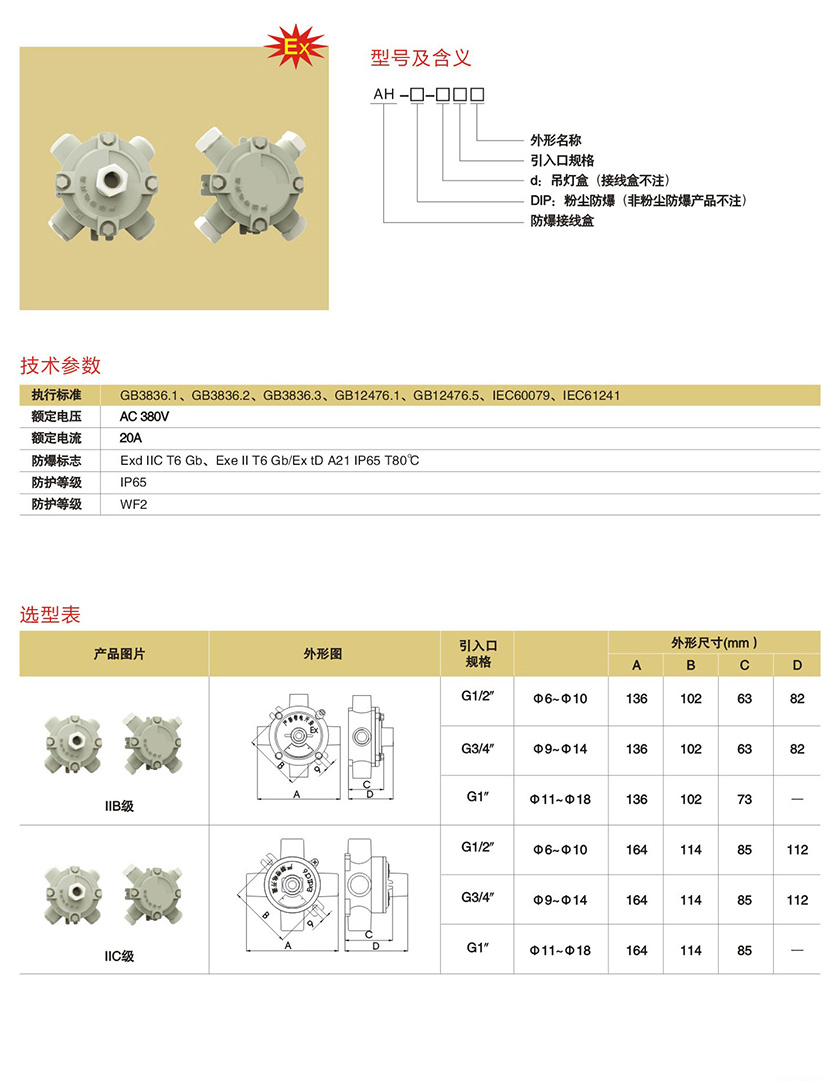 产品中心 防爆配电箱、电器管件类 AH系列防爆接线盒(IIB、IIC)