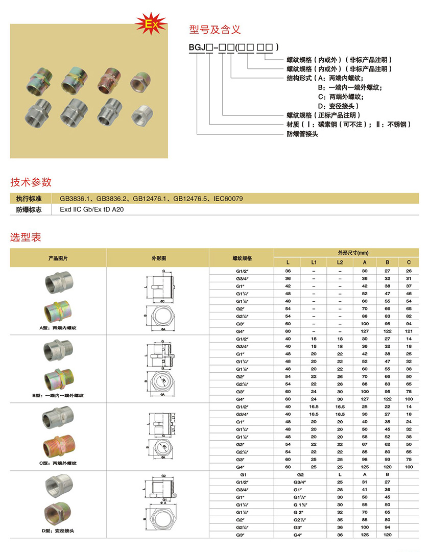 产品中心 防爆配电箱、电器管件类 BGJ系列防爆管接头(IIB、IIC)