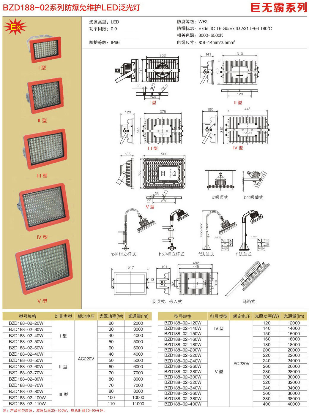 产品中心 LED免维护防爆灯具系列 免维护LED防爆泛光灯BZD188-02 Ⅰ型