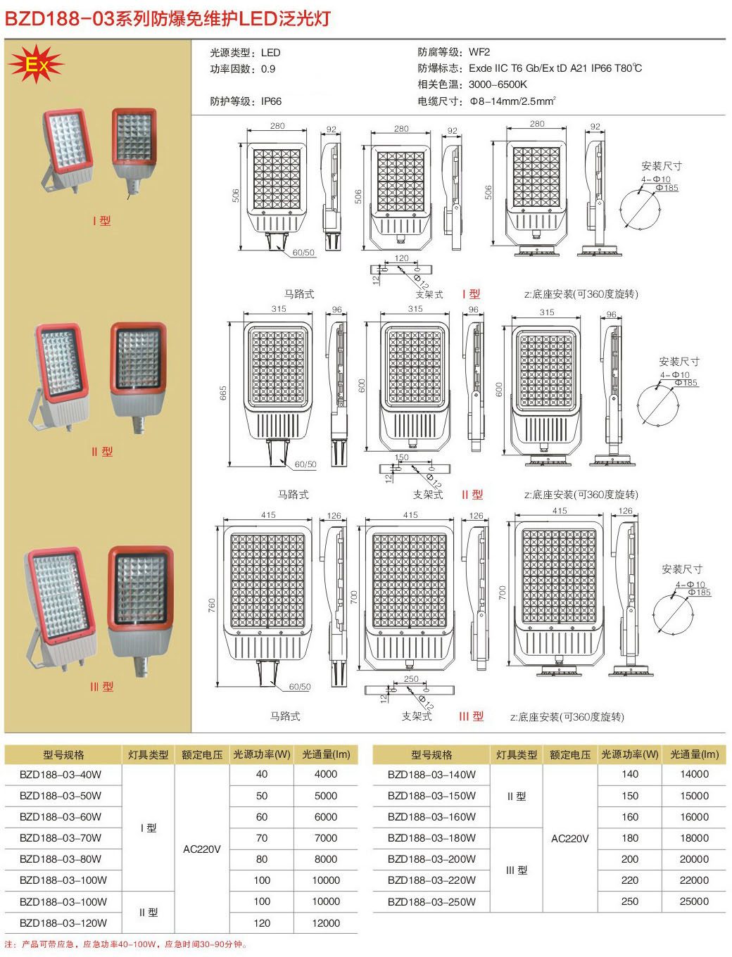 产品中心 LED免维护防爆灯具系列 免维护LED防爆泛光灯BZD188-03 Ⅰ型